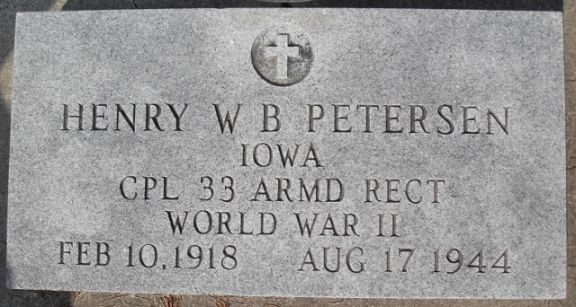Remarks  Cpl Petersen is the driver of Maj. Gilkey who's halftrack hat a direct hit of a shell on 1944-08-02.